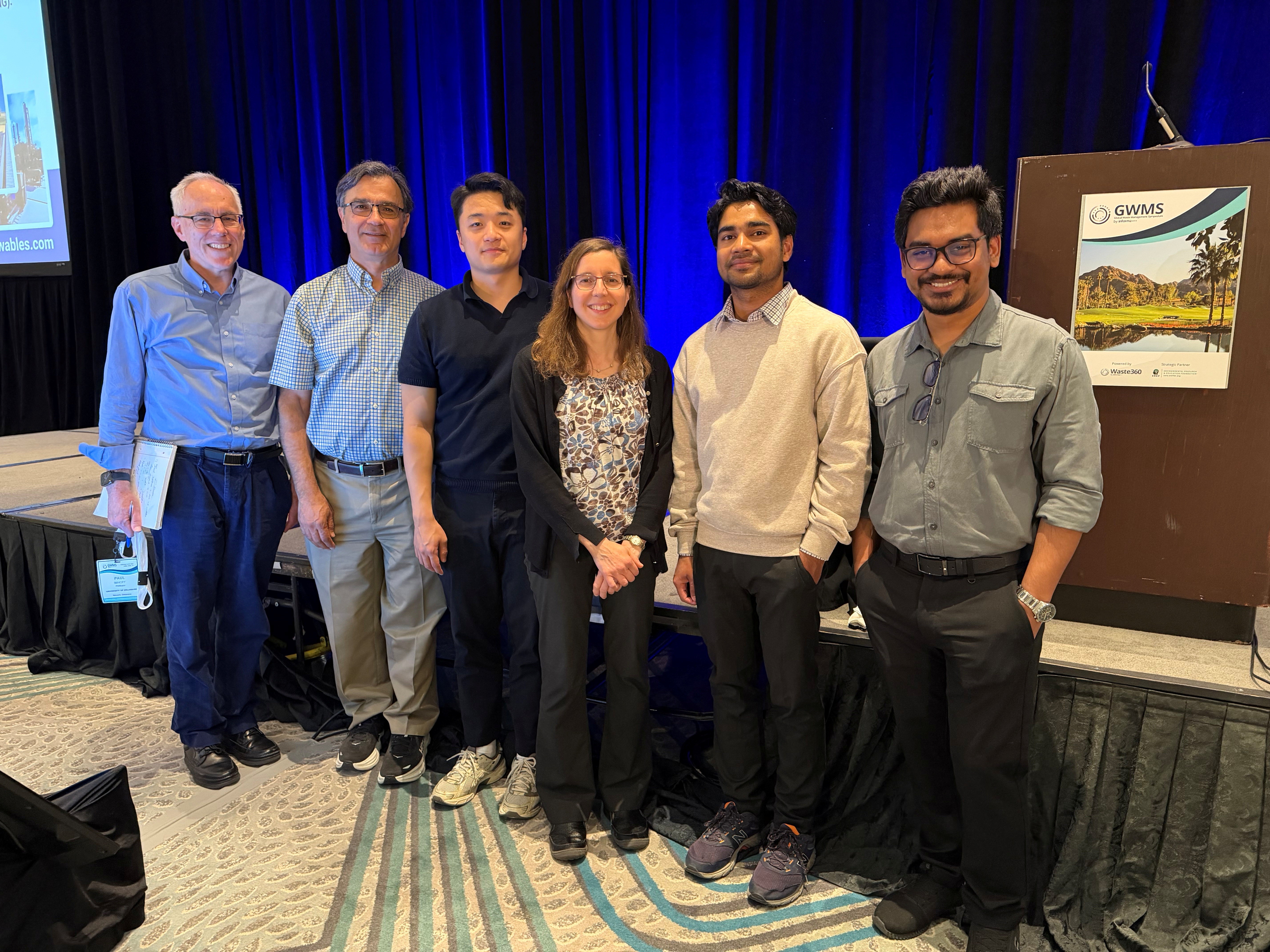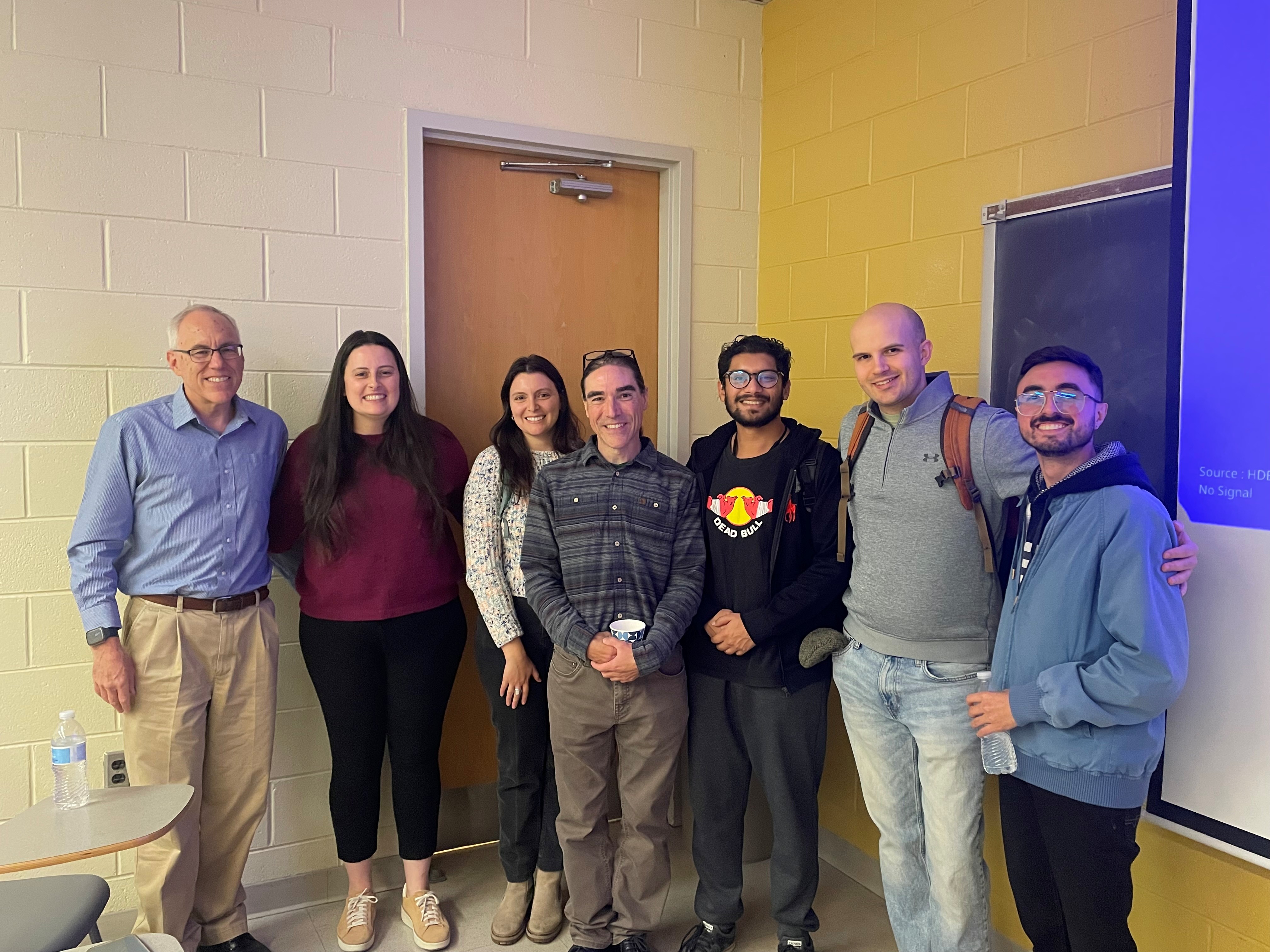 (Below) Photo after John Mosel’s MS Thesis defense. Faculty committee (Imhoff and Mijic) and fellow graduate students.